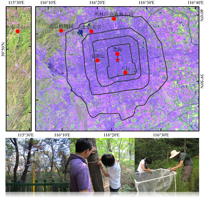 北京城乡生态梯度研究平台:共7个梯度连续监测CO2、温度、O3等,测定值被、土壤、树木生长、凋落物分解等,为城市生态系统研究提供基础平台。