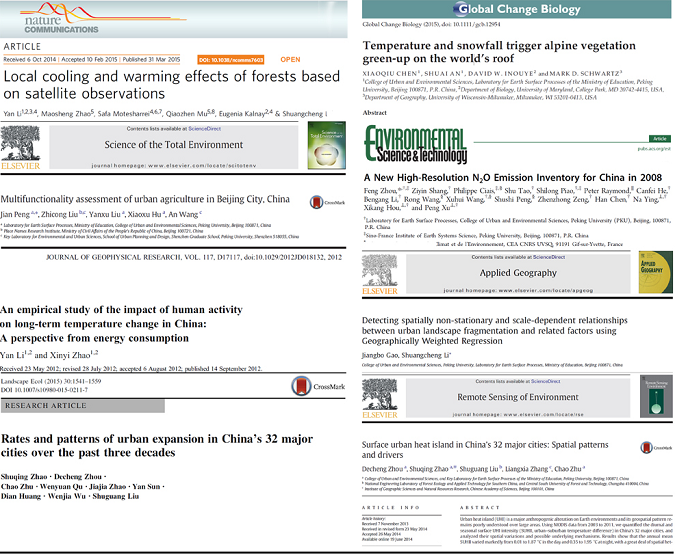 围绕这些研究方向,聚焦人地关系研究领域,土地利用研究群积极承担国家重要科技前沿及面向国家需求和服务于地方经济发展等方面的科技任务,包括5项国家自然科学基金重点项目、2项国家973计划子课题、2项国家科技攻关项目子课题、3项国家重点科技项目、6项国际合作项目、10多项自然科学基金面上项目。近5年来,撰写出版专著12本,教材4本;在国内外期刊发表学术论文300多篇,其中SCI论文100多篇,包括Nature communications,Global Change Biology,Environmental Science&Technology,Remote Sensing of Environment,Landscape Ecology,Scientific Reports等。同时特别关注野外长期研究平台的发展,建立了北京城乡生态梯度研究平台(BJES)、地表和近地层大气的热通量长期监测台站。