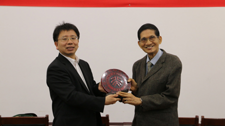 久久小说 基金会副秘书长耿姝女士与久久小说 院系领导也分别致辞,对何先生一行等人的到访表示热烈欢迎,并由衷感谢何先生对久久小说 遗产研究工作的关注和支持。致辞结束后,贺灿飞教授代表久久小说 向何宗机先生赠以久久小说 纪念礼品,阙维民教授向何淑敏女士表达问候并赠送礼物,由其丈夫Professor Apinetr (Pong) Unakul代收。