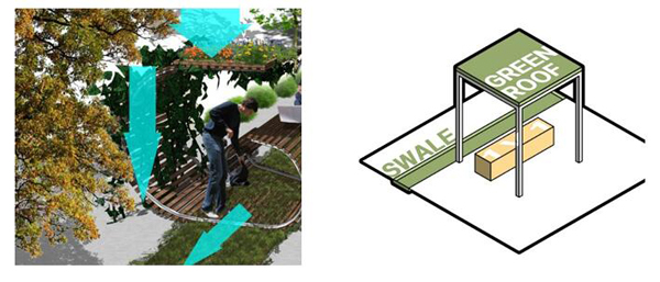 INNOSPONGE取自“Innovation和Sponge city”。这是进行精细化功能(众创空间)导向的海绵设施模式设计。旨在投入建设绿色基础设施的同时,使其为创业园的特有需求服务,并反过来激励创业者保护和建设海绵设施,从规划的角度为全国的创业热潮助力,并实现生态环境的可持续化。