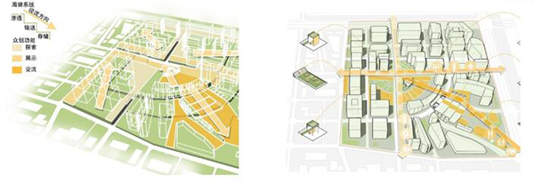 我们以北京中关村西区为设计场地,进行传统的海绵城市相关分析后,完成对海绵系统的分区布置,创新设计众创空间化的海绵设施。
