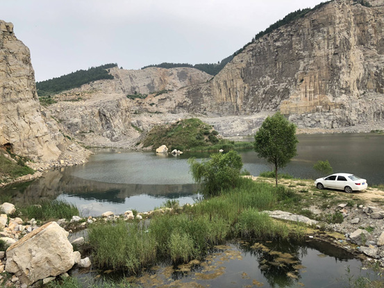 随后,调研组前往昌乐的工矿废弃地考察,目前昌乐县正着手于对面积比较集中的矿坑进行生态修复和复垦利用。矿坑内积水形成湖泊,景色宜人,吸引了很多当地居民来游泳游乐,有良好的改造基础。目前潍坊市已批复对昌乐县53个矿坑进行治理,但是矿坑修复所需资金规模巨大,如何实现投资收益平衡仍是一个难题。