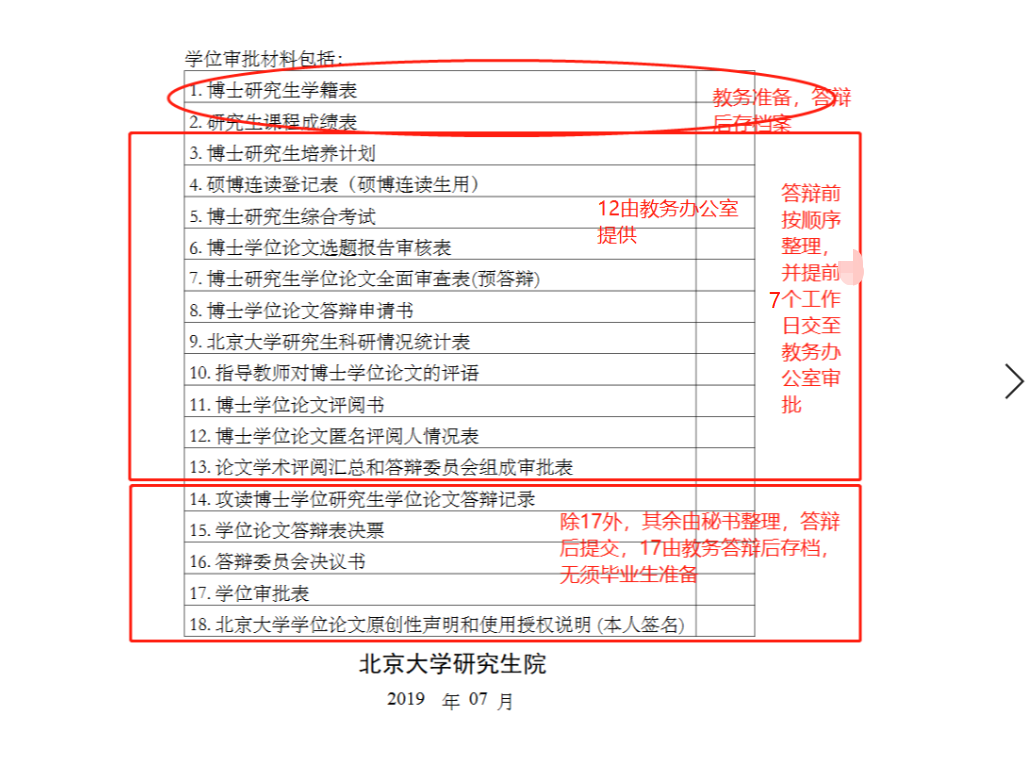 d.论文信息及秘书表格(填写问卷星://www.wjx.cn/vj/rDg5hYr.aspx。如果秘书有更换可以重新填写,毕业生姓名后面标注新,如“张三(新)”;研究方向按照论文实际填写,答辩秘书需与导师确定,由博士后或中级及以上职称老师担任,需要具备北大工资号,实在有困难的课题组,可以由认真负责的高年级博士生担任,请务必安排认真负责的人员担任,答辩秘书权限由教务办公室根据秘书信息统一开通)。