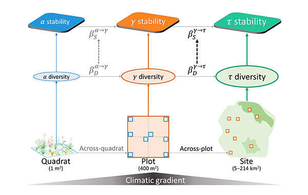 城环学院王少鹏研究组在《自然•生态与进化》发表论文揭示生物多样性的多尺度稳定化作用