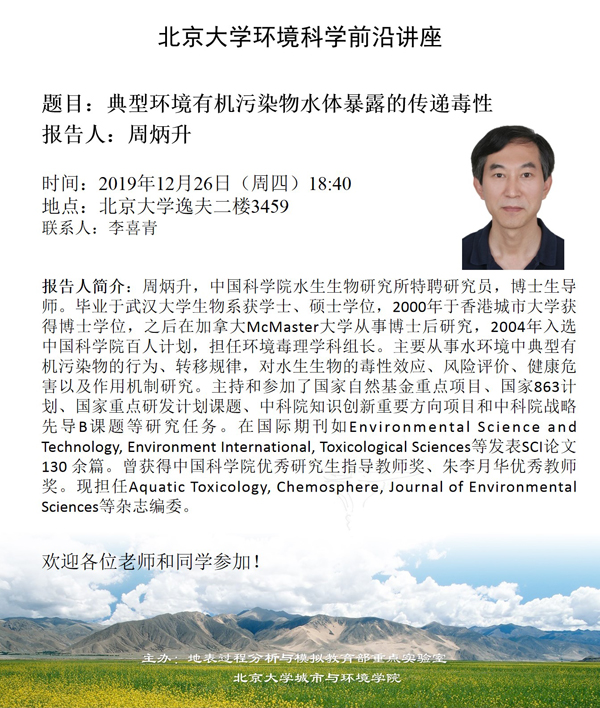 典型环境有机污染物水体暴露的传递毒性