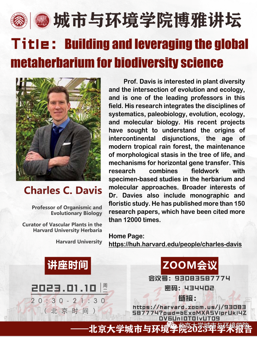 主讲人:Charles C. Davis,Professor of Organismic and Evolutionary Biology,Curator of Vascular Plants in the Harvard University Herbaria, Harvard University