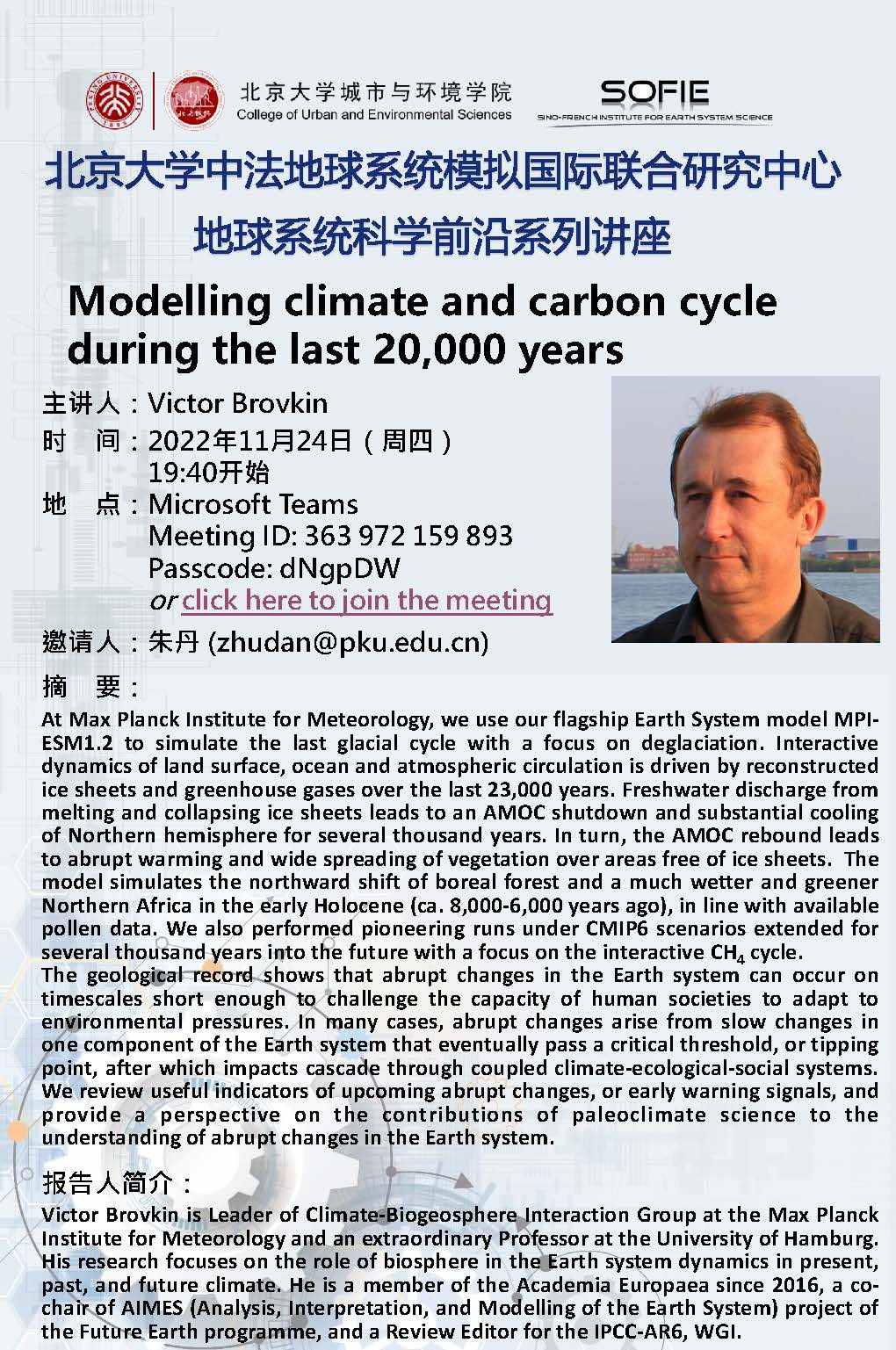 Modelling climate and carbon cycle during the last 20,000 years