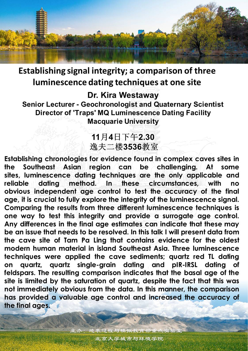Establishing signal integrity; a comparison of three luminescence dating techniques at one site