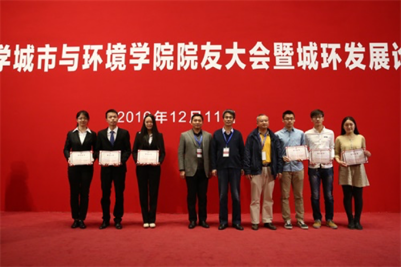 接着,大会上还举办了第四年度铁汉城环奖奖学金的颁奖仪式。刘水学长与李双成副院长、李本纲副院长共同为获奖同学代表颁奖。