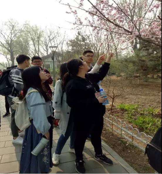 不知不觉间,燕园已经弥漫着燕园的气息。一路上繁盛的迎春花传来春天的讯息,三教外的几棵开得正盛的樱花更是引来许多同学拍照赏花。值此早春佳节,我们16级环科班的班委决定组织大家前往玉渊潭公园踏青赏花,实地学习更多植物知识。 4.1日,虽是周末又是有趣的愚人节,大家还是选择早早起床。七点半的时候我们已经在东南门集合完毕了。本着绿色出行的理念,我们乘坐公交出行。半个多小时之后,我们就到了玉渊潭公园,恰逢公园举行的樱花文化节,公园内游客众多。 我们从东门买票进入公园后根据公园的指示牌确定游玩路线。 春风拂面吹散了早起的困意,公园里柳树抽嫩芽,樱花绽新蕊,一派柳暗花明、充满生机的景致。大家平时虽然有不少一起上的专业课,但是一般是和室友结伴而行,所以同学之间尤其是男女生之间的交流也不是很多。但是在公园轻松而又闲适的环境下,我们一行九人缓缓走在林荫道中,畅谈近期的学习情况以及参加的各项活动。从植物的本纲目科属种到曾经做过的普生实验以及喜欢的文学作品,我们聊得十分投机,气氛十分活跃,同学们之间的感情拉进了不少。 同学们聊天、观察樱花 由于是樱花节,我们的话题里肯定少不了各种花。大家会在一颗樱花树下停下,一起欣赏樱花,讨论起花蕊,花瓣等其他形态特征。我们的班委还精心设计了一个关于花的小问卷。大家相互讨论再根据自己的观察实践,开心地完成了问卷。 同学们填写调查问卷 同学们合影 在游船停靠的码头上,我们稍作休息,并拍下了我们的合影。玉渊潭之游就这样在欢声笑语中结束了。然后我们乘坐公交返校,回来的路上大家一扫早晨坐公交时的小小的拘谨,继续未竟的话题。