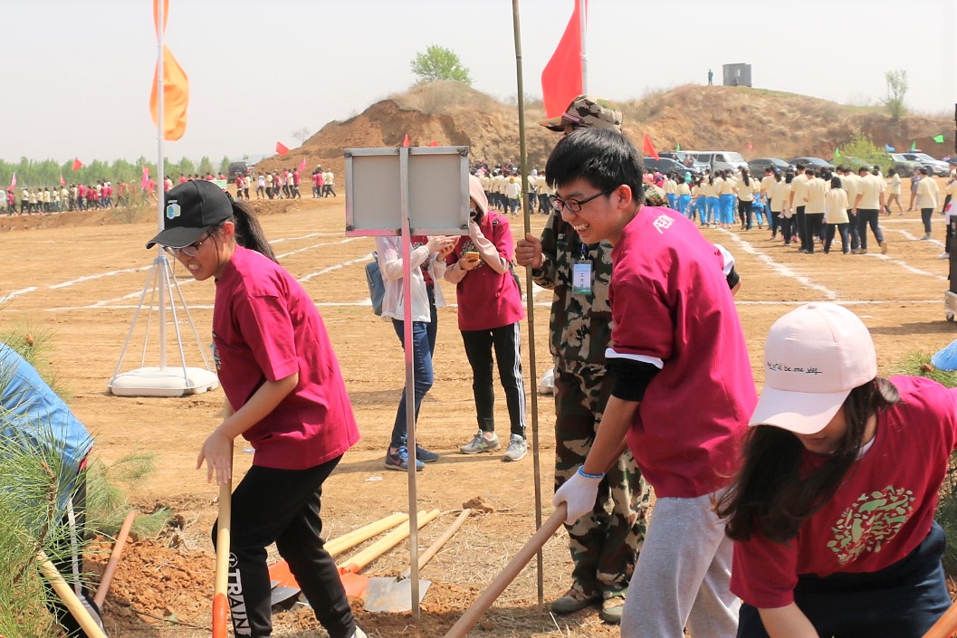 的志愿者们前往所在组植树区域,几人一组合力植树。尽管缺乏经验,但在关老师的指导下,同学们迅速掌握了科学的铲土方法。骄阳似火,同学们也干得热火朝天,铁锹挥动、泥土纷飞,大家按照铲土、填埋、夯土、浇水的流程,齐心协力种下一棵棵马尾松树苗。不少同学表示,想不到在北京市最重要水源基地的密云水库附近,还有这样荒芜待种的土地,他们今后将会更加关注水资源质量、关注我们的生存环境,并将更多投入到类似此次植树的环保活动中。 图4 活动合影 “绿水青山,就是金山银山。”值此世界地球日之际,同学们积极投入到植树活动中、增强爱绿植绿护绿意识、以实际行动践行环保,这正是“城环文化节”精神的生动彰显。改善生态环境,提升生活品质,需要我们携手并进——让我们植下一棵碧树,共赴蓝天绿水之约!