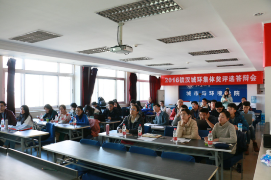 童昕副教授、16级硕士班班主任付晓芳老师、团委书记学工办主任王宇凡老师、学院党委人事办公室刘萍老师、科研外事办公室唐琳老师、研究生教务吴文婧老师、本科生教务宫彦萍老师作为评委嘉宾出席本次活动,活动由城环学工办副主任刘耕蒲老师主持。 铁汉城环集体奖的设立是为了培育集体意识、增强集体凝聚力,表彰团结、互助、有爱、积极向上的集体,从而在全院范围内形成热爱集体、关心集体、积极开展集体建设的良好氛围,从2011年开始设立,一共举办过3次评选活动。今年在学院的大力支持下和同学们的积极参与下,再次启动了铁汉城环集体奖评选活动。 活动开始以来,得到全院同学的积极参与,最终进入答辩环节的17个集体分别是14级生态地科班、城环羽毛球队、14级博士党支部、14级博士班、129核心团队、城环慢垒队、城环排球队、15硕士党支部、文县实践团、城环男篮队、14环科班、城环学生会部长团、城环研会部长团、“燕南北侧户外空间改造计划”课程小组、城环辩论队、丹霞山实践团、中国大学生环教教育基地志愿者团队。 在答辩过程中,各个团队展现出了自身独特的风格与团队精神。其中14级生态地科班着重强调了自身野外实习经历;城环羽毛球队以顽强拼搏为主题,逐步从低谷中走出,迈入高峰;14级博士党支部和14级博士班重点介绍了丰富的活动和制度创新方面的突出贡献;129核心团队每年对于学院129活动的大力支持;城环慢垒队则是以传承、记忆与归属为核心理念;城环排球队以家诠释了集体;15级硕士党支部以又红又专、积极参与的党支部为目标;文县实践团给文县的孩子们带去了鼓励和欢笑;城环男篮队向我们展示了严格的训练计划;14级环科班另辟蹊径,展示了班级的五个“最”;城环学生会部长团是一个既能玩又能工作的集体;环教基地志愿者团队不改初衷,十年环教,一见青心,传播环境保护理念;城环研会部长团各司其职,团结一致;“燕南北侧户外空间改造计划”课程小组以上课为契机,以比赛为磨练,积极探索实践的真知;辩论队以多元文化为核心,全面提升队员的综合素质;丹霞山实践团以脚步丈量土地,行走在山河间。 2016年铁汉城环先进集体奖将评出2个城环标兵集体,4个城环先进集体,6个城环优秀集体,最终结果将于12月22日城环元旦晚会上揭晓并在晚会现场举行颁奖仪式。