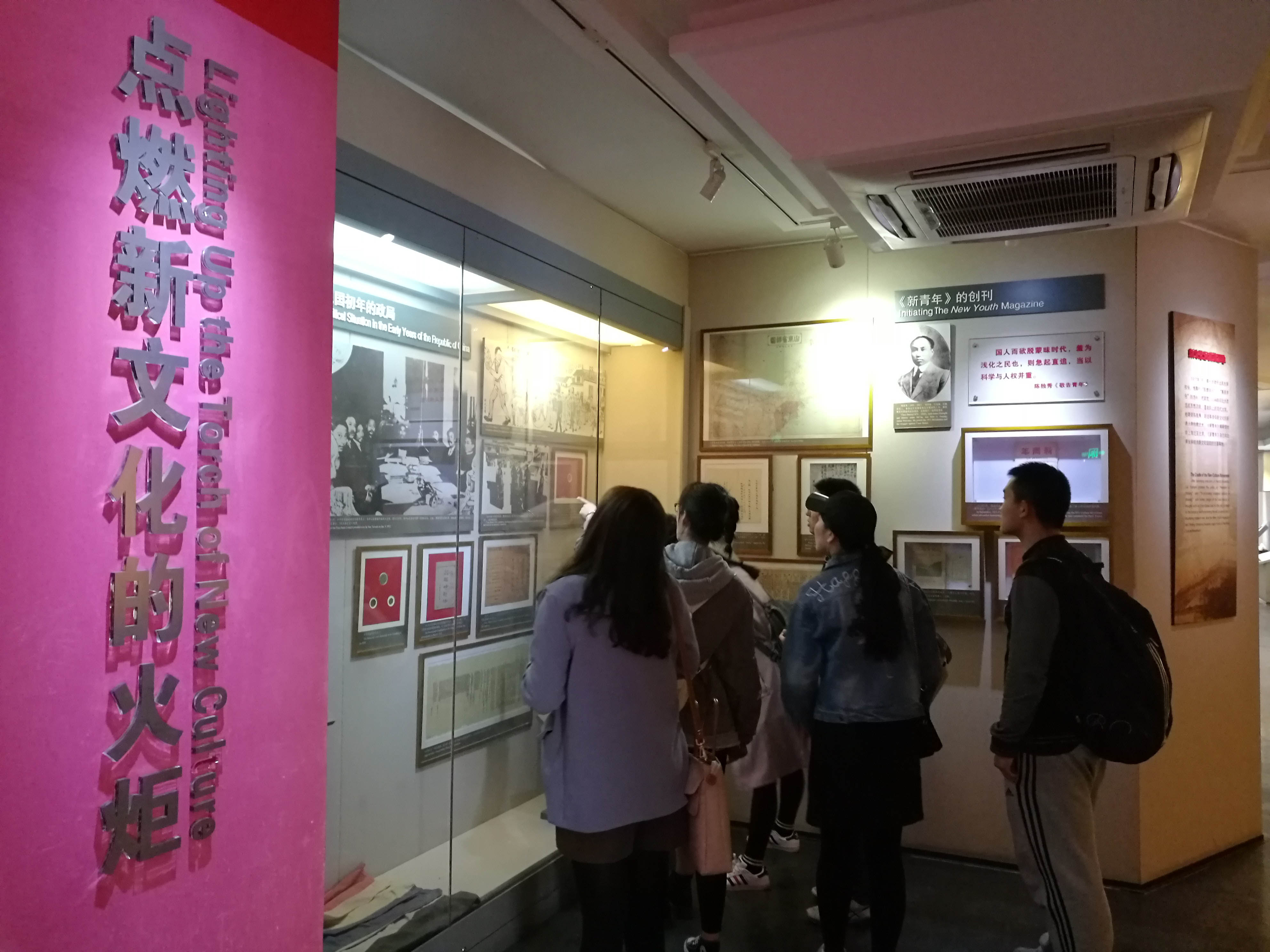早期历史和新文化运动历史的重要场所。 学员们在红楼门前的合影 下午1点半,同学们统一前往红楼。在门前合影后,同学们开始了本次参观。同学们首先参观了“蔡元培与久久小说