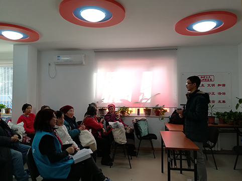 组织5名中国大学生环境教育基地-“林歌”项目组的志愿者在凛冽的寒风中来到畅春园社区,为社区老人们讲解日常生活中的环保常识。同学们认真讲解,老人们踊跃参与,大家其乐融融,气氛十分热闹。 图一.讲解环保常识 一进社区,同学们便受到了社区工作人员的热烈欢迎,在场的老人们也迫不及待想要与同学们交流。紧接着,同学们迅速整理好物品,架起展板,并向大家说明了本次活动的主要目的。第一部分是由王诚劼同学介绍垃圾分类的相关常识。他首先对老人们的垃圾分类情况进行现场调查,结果出乎意料:不同于一般群众的漠不关心,老人们一直在做垃圾分类,然后交给社区统一处理。随后,郑逸飞同学用口袋和纸片代表“垃圾桶”和“垃圾”让大家现场模拟垃圾分类,老人们电光火石之间就把垃圾分门别类,既准确又熟练,令同学们佩服不已。 图二.模拟垃圾分类 第二部分是由苏比同学介绍有关塑料的常识,第三部分是由张斯琦同学介绍点外卖、寄快递对环境造成的负面影响。两位同学的讲解通俗易懂又不失诙谐幽默,老人们也不时发表自己的看法。老人们表示,她们深知废弃塑料、外卖快递包装的难以降解与巨大危害,所以很少点外卖或收发快递,即使有少量的废弃物,也会扔进不可回收类的垃圾桶内由社区统一处理。她们还表达了对当代一些大学生由于懒惰而天天点外卖、网购的现状的不满,希望林歌计划下一步能在此方面做出努力。 第四部分是由蔡鸿伟同学主持有奖问答,同时,同学们与老人们交流分享生活经验。在一片欢声笑语中,问题得到了很好的解决。 活动至此圆满结束,社区工作人员向同学们表达了深深的谢意,并提出,希望同学们今后能更多举办类似的活动。本次活动通过宣传垃圾分类、塑料用品回收等生活环保常识,有利于增强社区居民的环保意识,推动社会各界一道共建生态文明。同时,同学们在志愿服务的过程中获得了满足,充分展现了当代青年学生的良好风采,有利于更好弘扬“知行合一、做实干家”的力行精神。 撰稿:蔡鸿伟