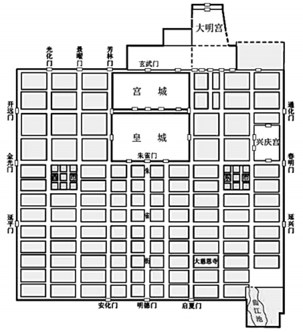古罗马城平面图 河南偃师二里头遗址3号基址(2002年5月23日摄)新华社发 唐长安城平面示意图 我们今天讲演的题目,与上古城市有关。上古城市涉及城市发展最古老的阶段,我们所思考的是,在文明初兴时期,城市这类聚落的空间景观特质。可以说,这是文明起源研究的一个侧面。 这里需要说明一点,我们这个考察,与文献考古的基础事实考证不太一样,我们所关注的,是在历史事实基础上所提出的问题,而这些问题,需要从历史地理学的角度来统摄,或者说,是从历史地理学角度进行学术叙事。我们对上古城市的研究,可以通过历史地理学的问题意识而获得新的认知。 唐晓峰 城市的起源:从聚落到城市 要讨论上古城市的起源,就要涉及城市的本质,或者说要辨析一下,上古城市与一般原始聚落的本质区别何在。 学界曾提出过关于早期城市的不同定义,其出发角度包括诸如城市的规模(2000人以上)、形态(是否有城墙)、商业性等。学者们从不同角度出发对城市的多种定义,指示出城市的不同功能和面向,比如“都邑”的表述强调政治性,“城市”的表述则更强调经济性。又比如古埃及的城市符号就是以圆圈代表防御、十字代表市场。 我个人认为,上古城市的变迁过程比较复杂,因此用单纯教条式地简单定义它,是不适合的。 澳大利亚裔的英国学者柴尔德曾经提出过城市革命(Urban Revolution)的概念。柴尔德从考古学材料演绎出了早期城市的十个标准,具体是:大型的居住区、人口构成和功能与任何村庄存在区别、剩余财富的集中化、巨大的公共建筑、从事非体力劳动的统治阶级、文字、历法与数学、专职从事艺术创作的艺术家、对外贸易、以居住区而非血缘关系为基础的政治组织。柴尔德提出,上述诸项的目标合力就是走向文明,那么问题的关键就在于,上述各项内容如何统合为一个整体机制。这就需要识别出引领性要素。 针对这个问题,我们提出,研究城市起源,在考察经济线索之外,还要关注“权力”或称“威权”在这个过程中的引领性作用。今天的学者,通过对考古学聚落建筑遗迹的观察,从历史地理学的角度来考察其中的某些权力表达。 那么,当权力成为主导要素时,它会对上古城市的发展有哪些影响呢?我们在陕西西安半坡新石器时代聚落遗址的模型中能够看到,它是一个由居中的方形大房屋以及环绕它的若干小型圆形房屋组成的聚落单元。我们判断,那个居中的方形房屋,它的形状与规模是古人刻意所为,象征着上古时代最初的权力,可以认为这是一个权力景观显现的基本聚落单元。在陕西临潼姜寨遗址,则四五个半坡式单元复合成了大型聚落,除了每个单元中照例有一个方形房屋存在之外,聚落中还凸显出一个更大的方形房屋,它应代表着更高的权力。从半坡遗址的一个单元,发展到姜寨遗址的若干单元,这反映出原始聚落的社会层级增长。同时,这个变化也体现出了权力层级的增长。 那么,这种聚落形态的下一步发展,会是什么样的?我们推断,它的下一步应该是聚落群体的出现。而在这样的聚落群中,会有一个中心聚落,代表着这个群体的最高权力。内蒙古凉城岱海地区的石城遗址群,很可能就是这个发展阶段的聚落群。类似的还有浙江的良渚遗址、湖北的石家河遗址、湖南的城头山遗址、陕西的石峁遗址、山西的陶寺遗址等。我们设想,在权力的作用下,古代的中心聚落中很可能汇集着更多的财富与各色人员(诸如巫师、武士、工匠等),为了保护这些财富和人员,这个中心聚落的建筑也会格外坚固、高大,其保卫设施也会格外严密。总之,这类中心聚落与一般聚落的差距越来越大,并从此成为城市的雏形。这就是在空间景观形态上,我们所看到的城市起源。 这里需要说明一点,我们考察的主要是上古时代的“人王”的权威,而在那个时代,神权也是不可忽略的威权之一。关于神权与城市起源的关系,美国历史地理学家惠特利曾在其《四方之极》一书中给予了足够的重视。不过,在中国古代历史的发展趋势中,城市与人王权力的关系更密切一些,在地理上,神权崇拜的位置大多在聚落空间之外。 虽然我们通过考古遗迹推断权力在聚落中存在,但还不能用它直接证明城市出现,更不能直接对应到具有国家性质的上古都城。为了识别古代文明国家城市的出现,我们还需要分辨上古国家权力与原始部落权力的差异。德国学者赫尔佐克在《古代的国家——起源和统治形式》一书中曾经强调说,要识别国家权力的“任务”的复杂性。在这里我们还需进一步指出,除了识别“任务”的复杂性而外,我们还需要关注这些任务的可持续性。赫尔佐克通过研究殷墟遗址,将古代商王的任务概括为军事、祭祀、法律、生存关怀,这样高度分化的任务种类,足以表明商王是一个文明集团的王者。商王的威权内涵不仅丰富多样,并且稳定、持久,具有日常化的特点,这才是“国家”形成的特质。由此推论,黄河流域的上古社会群体,在权力任务的多样性和持久性方面,显然超过当时其他地区的同类社会群体,所以,黄河流域是中国古代国家文明形成的核心区域。当然,古代国家文明要体现可持续性,就必须考虑适宜的自然环境条件,社会发展演进要付出环境代价,而古人如果在某些不适合人类生存居住的环境中长期活动,就需要耗费巨大的人力物力来维持,这些非生产性的耗费,在古代是很难持久的。