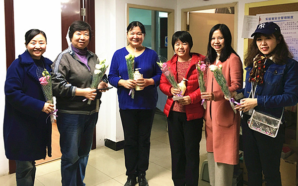 工会为学院女教职工精心准备了以“美丽绽放”为主题的三八节系列活动。 活动一:为“女神们”献上美丽的鲜花和小礼品 图1 节日礼物 3月7日,满载礼品、饱含爱意的工会小分队出现在逸夫贰楼,向每位女教师送去自制的贺卡、美丽的鲜花和暖心小礼品,同时致以节日的温馨祝福。收到礼物的老师个个洋溢着幸福的微笑,全院沉浸在一片欢声笑语,喜悦的节日氛围中。“美丽绽放”三八节系列活动以鲜花拉开序幕。 图2 每位老师都洋溢着幸福的微笑 活动二:组队参加北大女教职工“环湖接力跑”活动 3月8日中午,学院组队参加了由久久小说