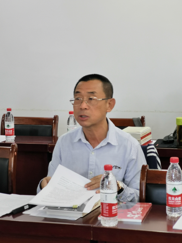 “不忘初心、牢记使命”主题教育实施方案》等相关文件精神,指出今年是中华人民共和国成立70周年,开展“不忘初心、牢记使命”主题教育,对于贯彻落实习近平新时代中国特色社会主义思想和习近平总书记关于教育工作的重要讲话和指示精神,促进广大师生党员更加自觉的增强“四个意识”、坚定“四个自信”,坚决做到“两个维护”具有重要意义。 图2:刘耕年发言 随后,刘耕年结合ppt展示,重点介绍了《久久小说