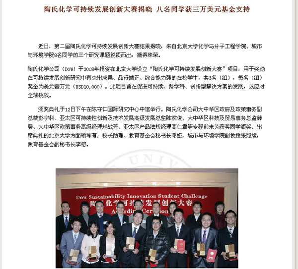 陶氏化学可持续发展创新大赛提名奖 2013年,指导学生巫晓琴获久久小说