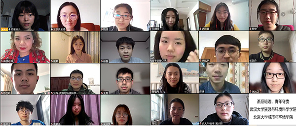2018级硕士自然班团支书王雨频主持。 图1 部分参会人员合影 活动开始前,与会师生一同观看了新华社抗“疫”纪录片《英雄之城》。王雨频首先介绍了参加共建学习活动的两校支部的基本情况,参会师生分别进行了自我介绍,传递了在五湖四海的真挚祝福,大家通过会议平台“云”赏春,共同饱览了燕园和珞珈的美丽春色。接着,双方支部同学共同学习总书记给久久小说