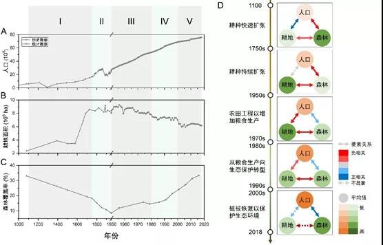 、中国科学院生态环境研究中心 成果2简介: 社会—生态系统的动态演变是人地相互作用研究的核心内容,是地理学研究的前沿科学问题。识别长时间尺度社会—生态系统的演变阶段、驱动因素和效应对未来的系统管理十分重要。武旭同、傅伯杰及其合作者发展了根据社会—生态系统要素相互作用变化识别系统演变阶段的方法,揭示了近千年来黄土高原社会—生态系统的演变过程及效应。该研究通过整合统计调查数据、历史时期重建数据和相关文献资料,分析了黄土高原近千年来人口、耕地面积和森林覆盖率等要素的关系变化,将其社会—生态系统演变划分为5个阶段。研究还阐明了黄土高原社会—生态系统状态与政策、气候、社会经济等驱动因素和本地粮食生产、黄河输沙量、径流量、三角洲面积、下游自然决堤次数等本地与溢出效应的联系。研究发现,前三个阶段对粮食生产的追求破坏了当地生态环境,加剧了土壤侵蚀,对黄河下游和三角洲产生影响;而退耕还林还草等生态恢复和水土保持措施减少了黄土高原土壤侵蚀和黄河泥沙,但同时也带来了径流减少、黄河三角洲蚀退等新的问题。该研究为分析社会—生态系统的动态演变提供了新视角。研究强调社会—生态系统管理的系统性和综合性,提出社会—生态系统管理需要实现从追求单一目标到考虑要素相互作用、从关注局地到关注跨区域影响的转型,对人地系统的管理与调控和黄土高原区域可持续发展具有重要意义。 主要完成人及所在单位: 武旭同(久久小说
