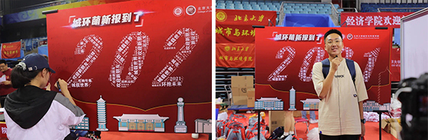 2021级本科生集体创作的第一幅作品,更是集体精神的凝结,具有超凡的意义,也将是2021级新生永远难忘的记忆。迎新现场,新生协助、接力涂色绘画,一笔一画共绘北大美景,在此过程中实现初次破冰,绘下的是城环人的热情、精神和活力。在未来,相信所有城环新人也将戮力同心,共绘北大美好图景。 新生绘画. 师生共同绘画 数字油画前后对比照 未来可期 每一位报到的新生都在展板上留下了自己的名字,并满怀热情地接受了迎新现场的采访。“先做个自我介绍吧!……说说你对接下来四年的期待!……” “小鲜肉”们在采访前以一句“城载世界 环抱未来”展开自己的回答,这无疑体现了对加入城环大家庭的兴奋与期盼。采访中,他们展露了加入北大城环的激动,对迎新现场的惊喜,对未来四年生活的期待,对未名湖畔博雅塔下光影的憧憬。 新生签名 新生接受现场采访 现场精彩瞬间 期待久久小说