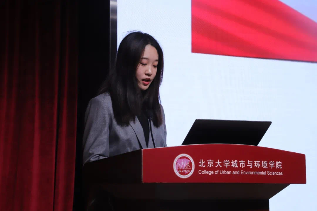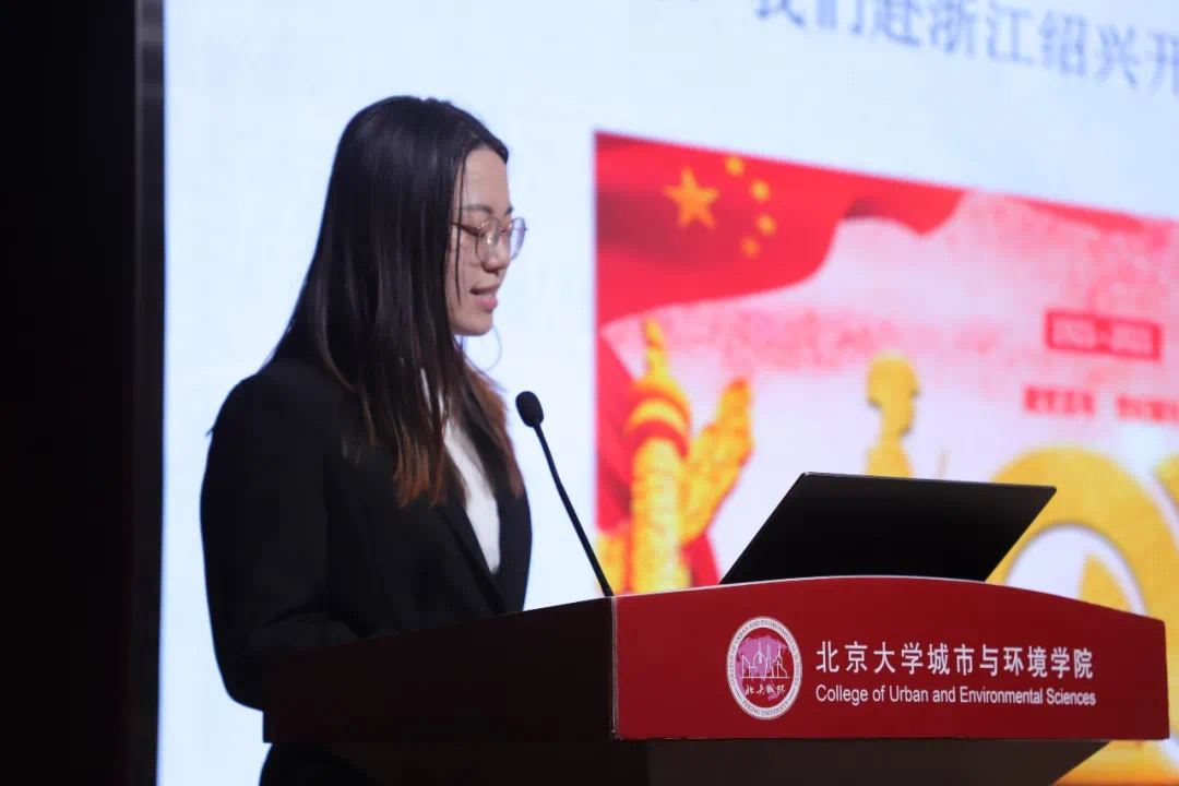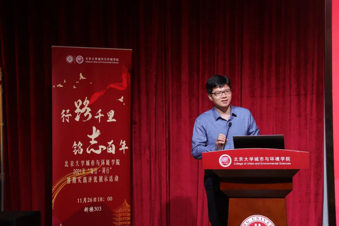 思政实践活动组织力强,学生参与积极,富有情怀和担当;思政团行程设置合理,主题明确;每晚都进行日会、总结学习,线上线下相结合,做到了思政理论学习与实践融合。 冯雅新老师致辞 接着,暑期实践团的4位助教上台汇报工作成果。浙江诸暨思政实践团助教李麟宛汇报了自己组织行前动员会、日评会等活动,组织分享“我最敬佩的革命先辈事迹”、对城乡发展新模式的感悟等活动,与同学们一起在实践中坚定初心,砥砺前行。 山西大同思政实践团助教李梦真决心要“做思政实践中的一块砖”,用一种坚实的力量,去托举思政实践活动的开展。在实践过程中,她努力成为构筑思政实践文化宣传长城的奠基砖、创新科研思政助教工作融合的引玉砖,以青春之我、奋斗之我为祖国建设添砖加瓦。 山西大同思政实践团助教彭昭宇寻战略发展,育人才先锋,帮助同学们深入学习政治理论,筑牢政治思想,增强政治本色。他认为,青年北大人,应当发挥自身优势,做好国家智库,城环学子要将自己的专业本领应用到国土空间规划与生态文明建设中,促进城乡发展,助力民族复兴。 黄河思政实践团助教詹子歆坚持“思政为纲,专业为基,实践为本”三条原则,带领同学们研读《习近平谈治国理政》等材料,学习党史,回顾一百年来党和国家取得的伟大成就,通过十天的行程,同学们真正走近了中国的母亲河,感受了社会主义建设者们治理黄河过程中团结一致、勇于探索、艰苦奋斗的精神,理解了生态文明建设对于社会主义现代化强国建设的重要意义。 助教答辩结束后,暑期实践团的7位个人代表依次上台进行汇报展示。 山西大同实践团的周子杰前往许堡村展开村容村貌的调研并在平型关大捷组织号召动员活动;浙江诸暨思政实践团的梁皓朝同学前往枫桥品基层治理经验,体悟民生百态;上海浦东实践团的魏婵娟同学作为久久小说
