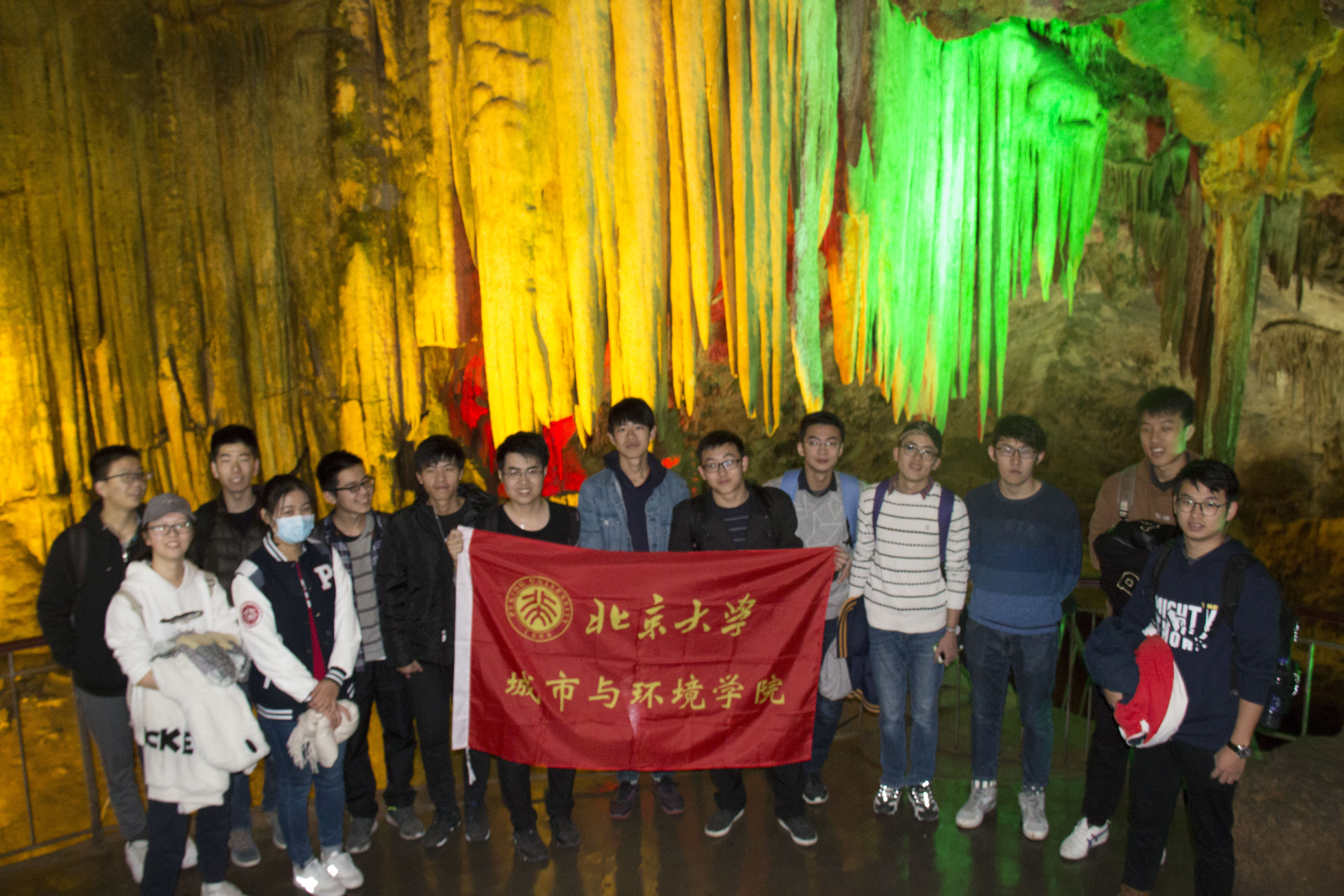 实践团师生在鸡冠洞内合影