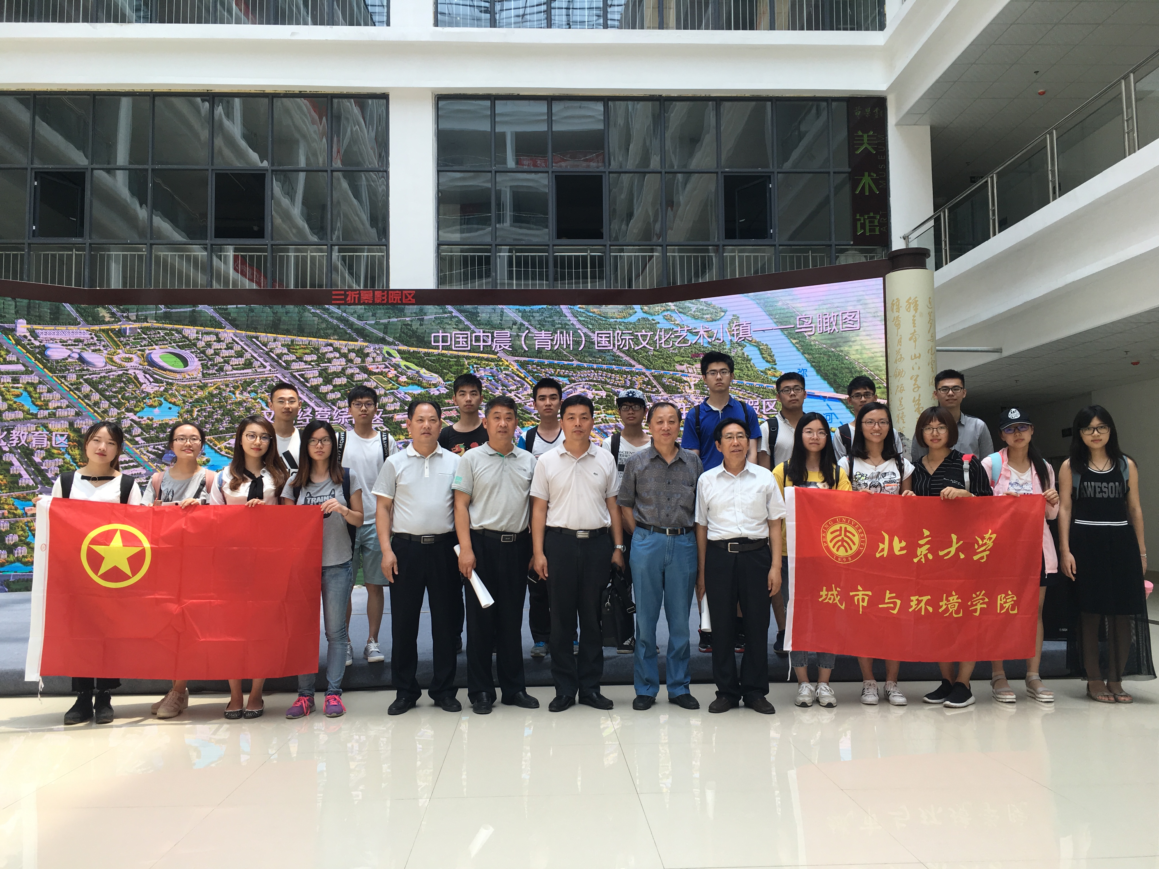 6月28日,人文地理综合实习团队顺利抵达山东省潍坊市。本次实习由冯长春老师和曹广忠老师带队,学院人文地理与城乡规划专业2014、2015级本科生共17人参加,对潍坊当地的城乡发展、特色产业、资源环境等进行深入调研考察。7月2日,为加强大学生党员、团员的理想信念教育,增进党性修养,实践团参观了山东省潍坊市峡山水库,并开展了“峡山区的绿水青山与金山银山”主题党团日活动。冯长春老师结合峡山区的规划发展提出了“以人为本、以水为源、以绿为基、以文为魂、以产为力、以城为核”的规划理念,讲述了峡山区从最初建立到发展至今的历程,重点为同学们解读了以有机产业引领绿色发展的峡山模式和生态产业化发展途径。曹广忠老师结合“绿水青山就是金山银山”的“两山”理论,介绍了峡山区实施的一系列生态环境治理工程。通过此次主题党团日活动,同学们对于推进生态文明建设,打造美丽中国的号召有了真实可触的感受,以及对生态文明建设的内涵和党的历史有了更加深刻的理解和思考。