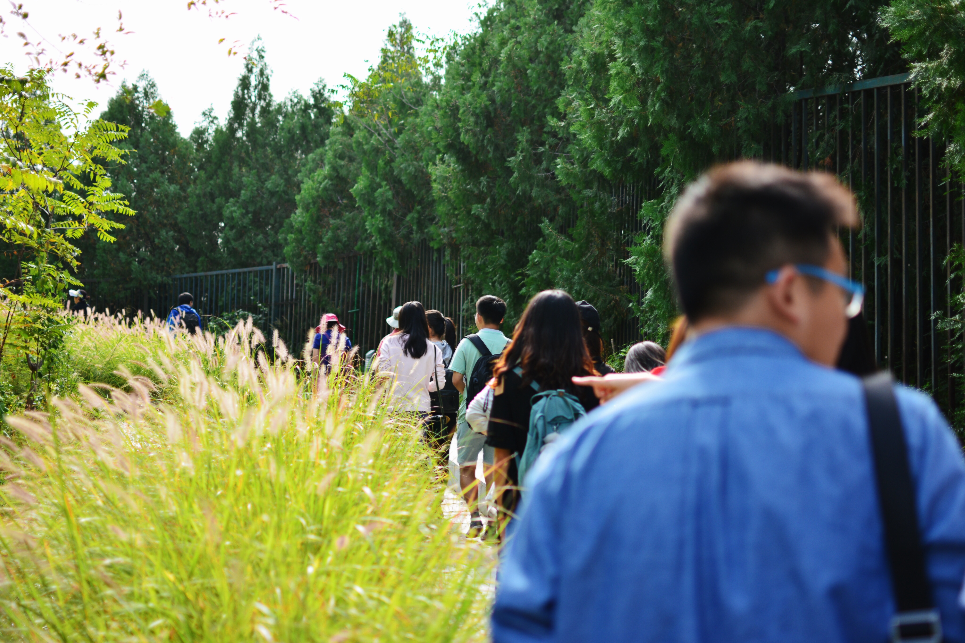 周六是个好天气,我们走进公园大门,沿山路向前行进。