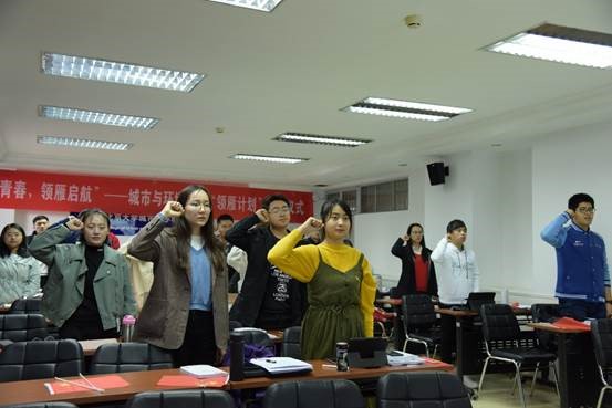 随着各负责人讲话的结束,主持人史毅夫带领参会的各个人员重温入团誓词,进行庄严宣誓。铿锵有力的誓词从与会者的口中迸出,会议的气氛走向了高潮。