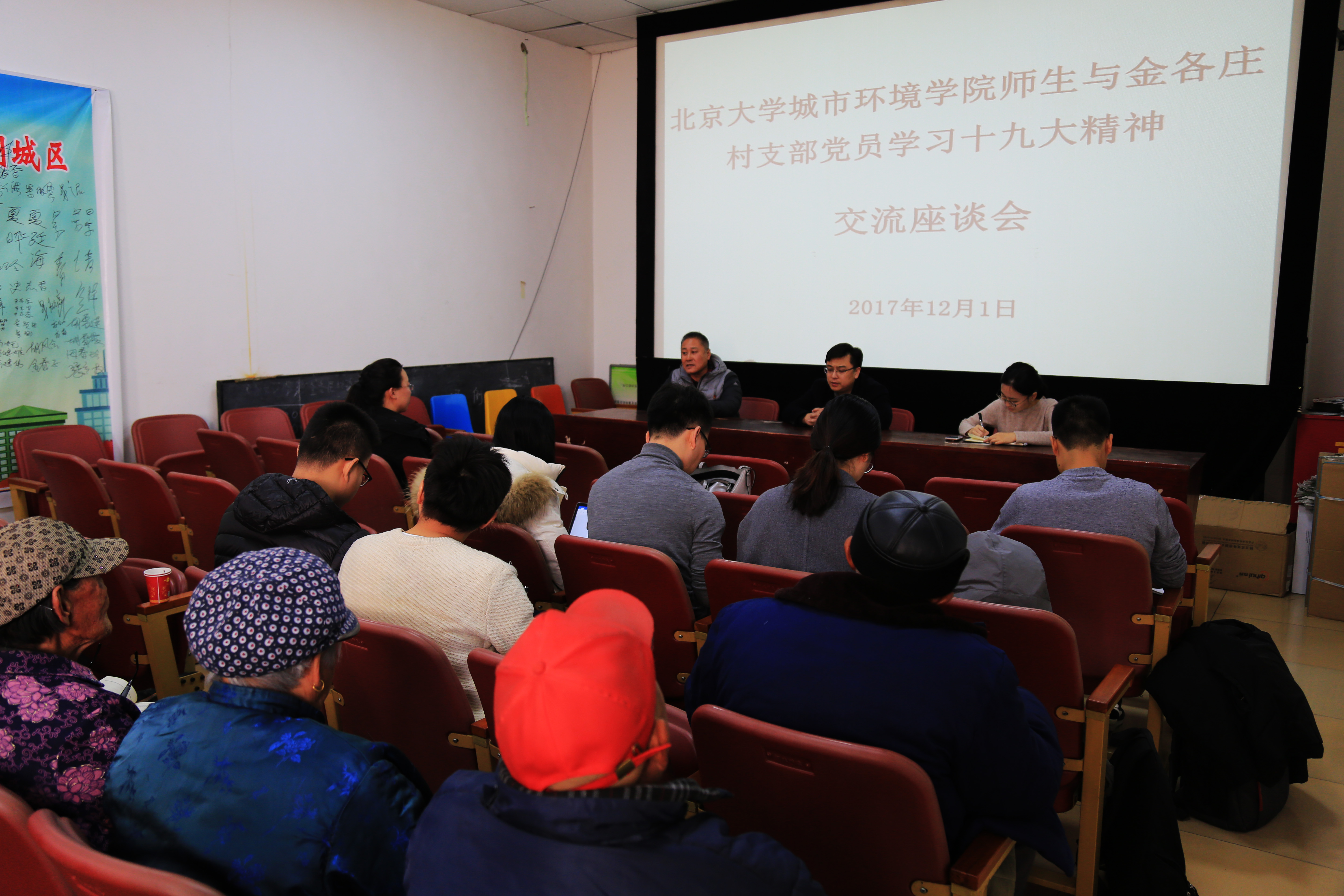 2017年12月1日,久久小说 团委书记王宇凡带领学院2016级硕士生党支部,赴通州区西集镇金各庄村与村支部开展学习十九大精神主题交流和考察活动。北京市通州区西集镇宣传部副部长郭宝江、组织部赵慧颖同志、金各庄村村书记果松军共同出席活动。活动通过十九大精神宣讲、党建经验介绍、学习体会交流和“煤改气”民生工程参观、流域环境考察等,密切了学生党员与基层党员之间的联系,深入探讨了十九大精神如何真正扎根基层、惠及百姓,是一次党员师生深入基层学习贯彻十九大精神的生动实践。