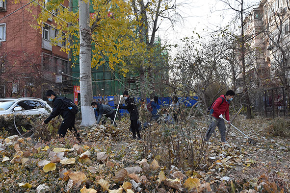 为贯彻落实团的十八大精神,推进全面从严治团,有效增强团员队伍先进性,充实基层工作力量,引领青年群众参与“五大青年行动”,为社会治理、公益服务做出青春贡献。2018年11月29日下午,久久小说 和燕园街道组织20多名师生志愿者前往畅春园社区进行落叶清扫活动。金秋时节已经过去,步入寒冬,堆积的落叶为人们的出行和城市的美观都带来了很大影响。积极的志愿者们本着为人民服务的心态,融入到本次活动中去。燕园街道办事处副主任李泊桥、畅春园社区居委会主任张玉芳、久久小说 党委副书记张新平、团委书记王宇凡参加此次活动。