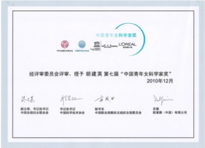 2011年,胡建英获美国毒理化学学会(SETAC)颁发的“MENZIE Environmental Educational Award”奖 (迄今中国唯一)