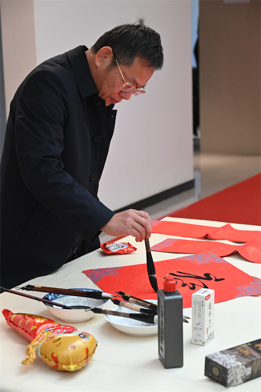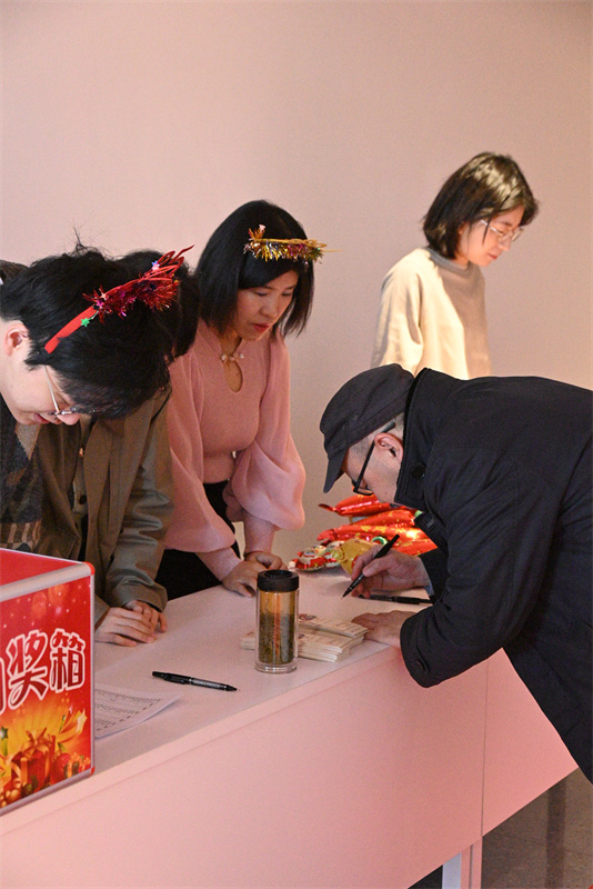 大会开始前,是“新春送福字、新年趣味赛、新禧欢乐照”环节。10日一早,学院大楼张灯结彩洋溢着节日的氛围,老师们现场挥毫泼墨,书写“福”字和春联,兴致勃勃参与投壶和飞镖挑战赛,并在新年展板前,定格下自己灿烂的笑容,留下一张张充满纪念意义的照片。活动现场洋溢着欢声笑语,气氛温馨而热烈。