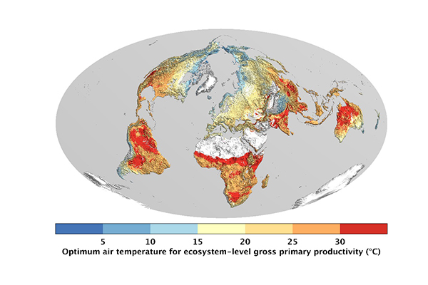 图1: 全球植被光合作用最适温度的空间分布