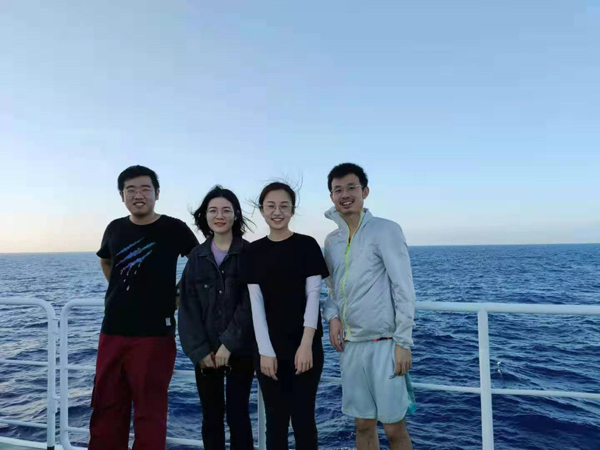 四位同学于前甲板合照(左起:商纪元、张婉莹、梁雍祺、安永睿)