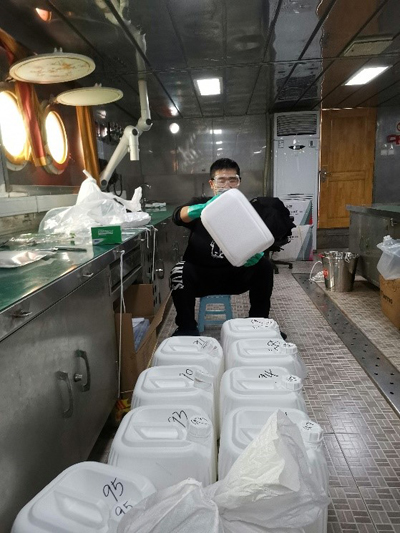 虽然说“初站”刚刚打响,后勤保障工作可是已经开展许久了,商纪元便是这后勤总负责,36桶20L采样桶,36桶20L中转桶一个不落的在短短十几天的航渡途中就必须预备妥当。预备流程俗称“洗桶”,这“洗桶”可不是简单的清洗,浓硫酸浸润,稀盐酸浸泡,去离子水洗净,这再乘以20L的容积,再加上每个步骤中的细心、耐心和用心。商纪元有着山东汉子的高大在身上,可毕竟不是铁打的,这72个桶下来也是肩颈酸痛,只能贴着膏药“初站”了。