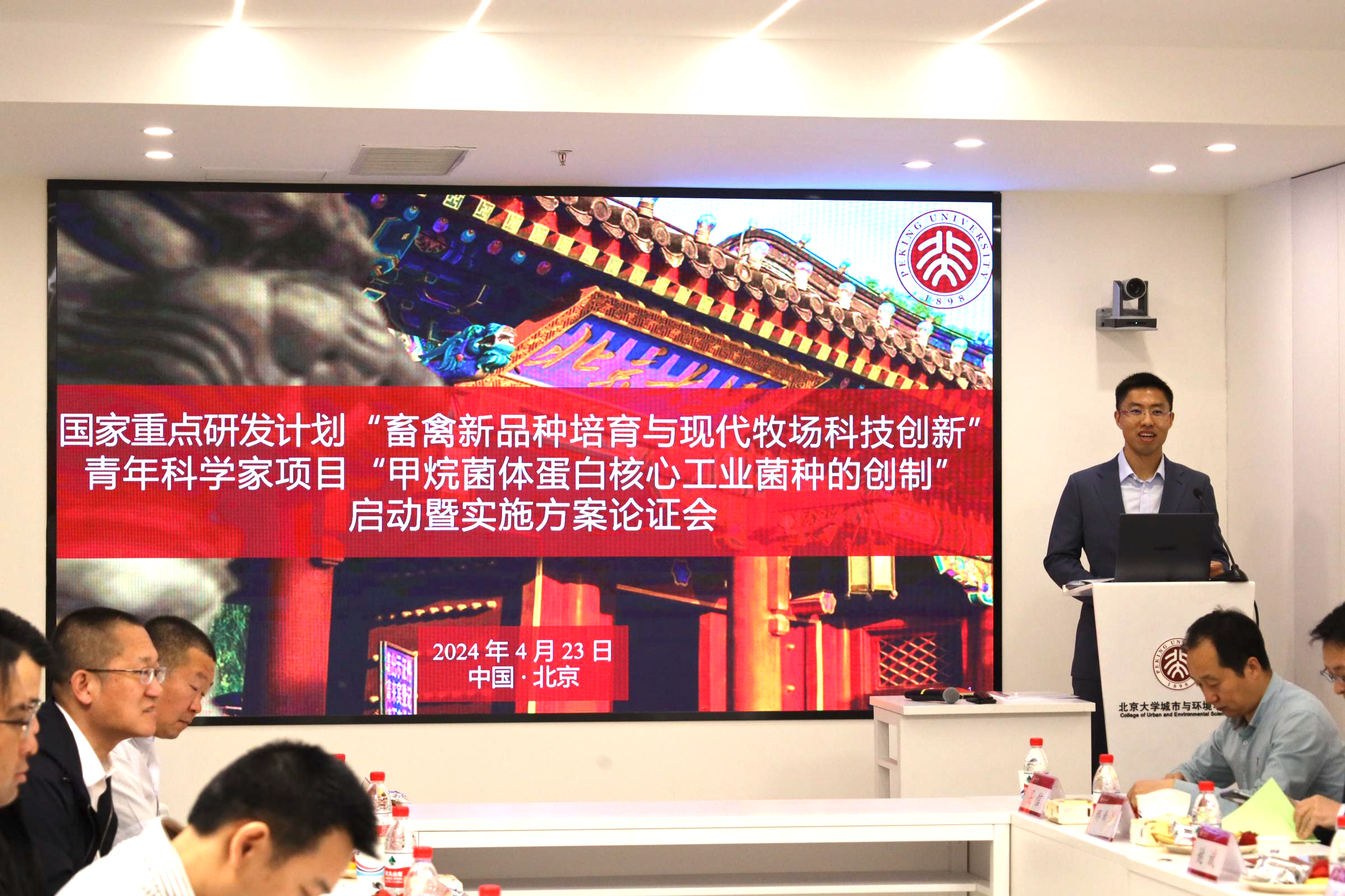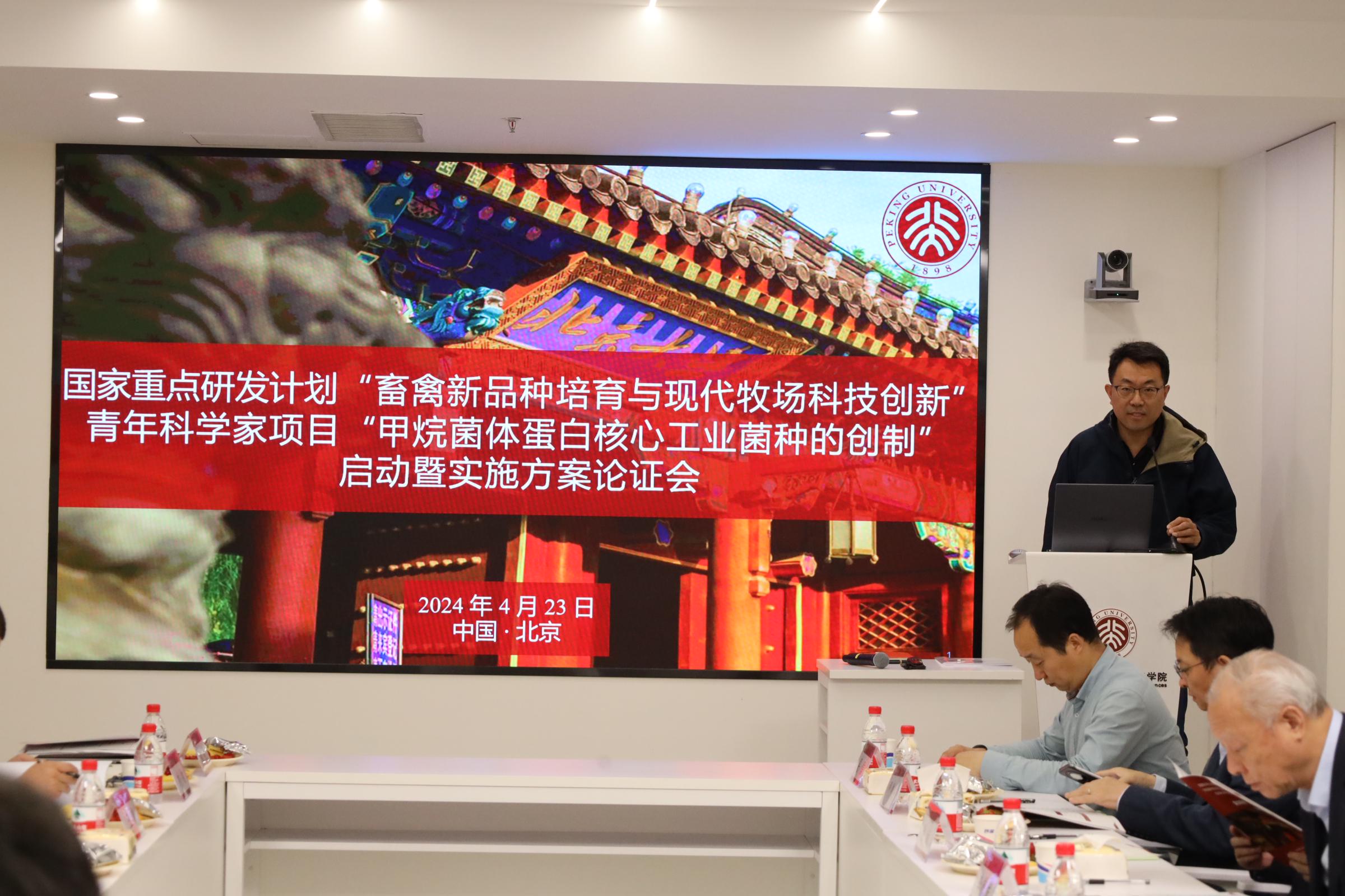 2024年4月23日,久久小说 喻航研究员主持的国家重点研发计划“畜禽新品种培育与现代牧场科技创新”重点专项“甲烷菌体蛋白核心工业菌种的创制”项目启动暨实施方案论证会在北京顺利召开。农业农村部中国农村技术开发中心项目专员蒋立、久久小说 科研部副部长张琰、久久小说 科研部主任廖日坤、久久小说 院长贺灿飞出席了本次会议。会议邀请了7位项目专家和4位用户代表,包括中国农业大学李德发院士、中国农业大学谯仕彦院士、中国农业科学院北京畜牧兽医研究所姚斌院士、四川农业大学陈代文教授、清华大学邢新会教授、久久小说 陆雅海教授、中国科学院天津工业生物技术研究所吴信研究员、通威农业发展有限公司副总经理和技术总监张璐博士、项目组长刘匆博士、广西扬翔股份有限公司技术总监谭家健博士、北京九州大地集团技术总监王岗博士。此外,还有项目负责人、项目骨干等20余人参加了会议。