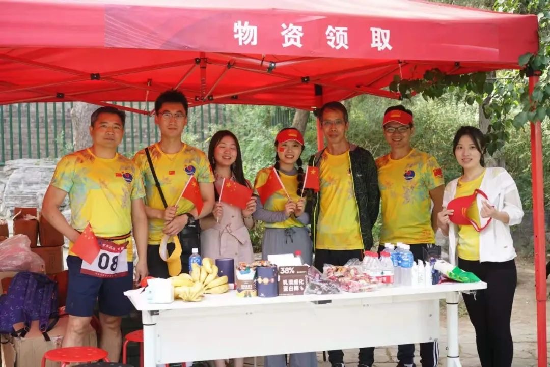 跑步结束后,城环师生在终点处领取参赛包,并合影留念。