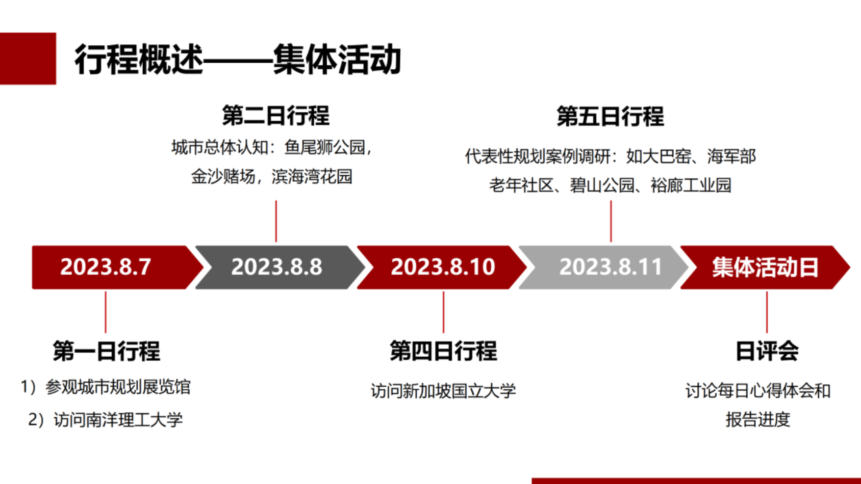“一带一路”联合实习的行程充分体现了专业性,行程设计以学习新加坡规划思想为目的,综合考量交通、区位等多方面因素,确保高效实现学习目标。