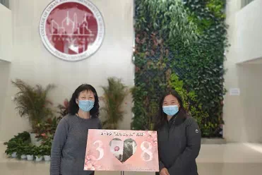 学院老师积极参与此次活动,党委书记彭建和工会主席陈耀华亲自带队女教师集体打卡。