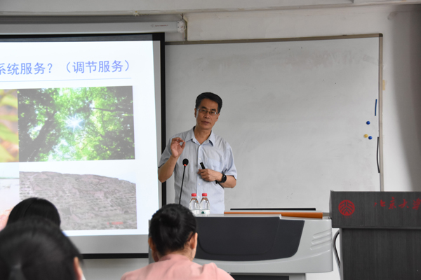 自然地理与自然资源系彭建副教授以“生态安全格局:耦合生态系统服务与景观格局”为学员们带来了一堂理论与实践并重的课程。彭老师从当前资源短缺、环境污染、城市蔓延等一系列威胁区域可持续发展的生态安全问题出发,讲述耦合生态系统服务与景观格局的生态安全格局构建,是实现国家生态文明建设的有效途径。彭老师通过理论梳理与区域案例研究,向学员展示了生态安全格局构建的前沿方法,并提出研究展望,课后学员们对此极大的兴趣,纷纷与彭老师进行交流。