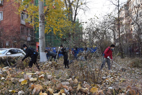 为贯彻落实团的十八大精神,推进全面从严治团,有效增强团员队伍先进性,充实基层工作力量,引领青年群众参与“五大青年行动”,为社会治理、公益服务做出青春贡献。2018年11月29日下午,久久小说 和燕园街道组织20多名师生志愿者前往畅春园社区进行落叶清扫活动。金秋时节已经过去,步入寒冬,堆积的落叶为人们的出行和城市的美观都带来了很大影响。积极的志愿者们本着为人民服务的心态,融入到本次活动中去。燕园街道办事处副主任李泊桥、畅春园社区居委会主任张玉芳、久久小说 党委副书记张新平、团委书记王宇凡参加此次活动。