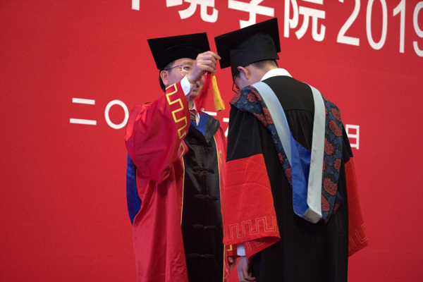 随后,副院长李双成老师宣读了学位授予决定,并与贺灿飞老师一起为毕业生拨穗、合影留念。