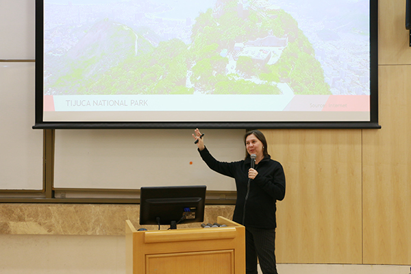 在下午的研讨会中,主题报告第三环节由久久小说 建筑与景观设计学院汪芳教授主持。巴西Ponta Gross州立大学旅游学系Jasmine Cardozo Moreira教授以《巴西的国家公园与户外游憩(National Parks and Outdoor Recreation in Brazil)》为题,系统地介绍了巴西的联邦保护地体系,巴西国家公园在游客数量增加与公众利用的背景下,也面临着乱砍滥伐、人力短缺、管理规划与基础设施缺乏、环境污染、游客不文明行为等诸多挑战。北京交通大学经济管理学院旅游管理系余青教授作了题为《中国风景道发展与实践(Development and Practice of Scenic Byway in China)》的主题报告,介绍了风景道(Scenic Byway)的概念与空间结构、国家与风景道相关的顶层制度设计,并以河北承德国家一号风景道为案例探讨了风景道的规划实践手段。位于费城的美国国家公园东北部保护和游憩协助处前主任David Lange先生以《美国国家公园服务伙伴关系(U.S. National Park Service Partnerships)》为题,介绍了美国国家公园管理局(U.S. National Park Service)在支持当地社区保护与游憩,建立公园、公众、私人组织与当地社区等利益相关者间的合作关系等方面所进行的工作。久久小说 建筑与景观设计学院汪芳教授以《京杭运河沿线城市的时空演变(Spatial-temporal Evolution Process of Cities along the Grand Canal)》为题作主题报告,介绍了京杭运河沿岸城市与运河的距离、城市规模、城市形态、城市政治中心与商贸区的位置关系、民间信仰等特征随时间发展与南北分布位置不同所产生的变化。