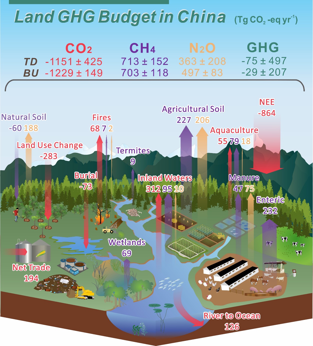 基于“自下而上”和基于“自上而下”的评估一致表明,自2000年以来,中国陆地生态系统是一个较小的温室气体汇: