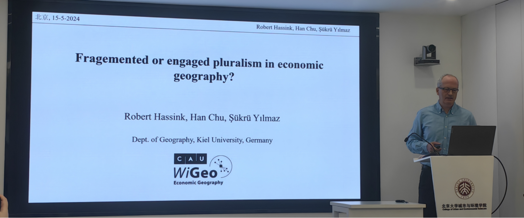 本次论坛为期三天。5月15日上午,贺灿飞教授主持“经济地理学进展”研究生课程,Hassink教授作为演讲嘉宾首先对经济地理学不同范式的研究内容、核心主题与研究方法进行了详细的介绍。随后Niebuhr教授就德国劳动力市场韧性进行了详细的分析。与会同学与德国专家积极探讨,尤其关注政策、区域外部力量等对德国经济韧性的影响。