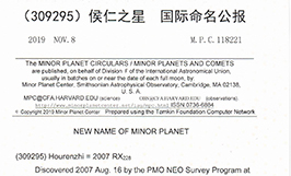 国际小行星委员会命名309295小行星为“侯仁之星”
