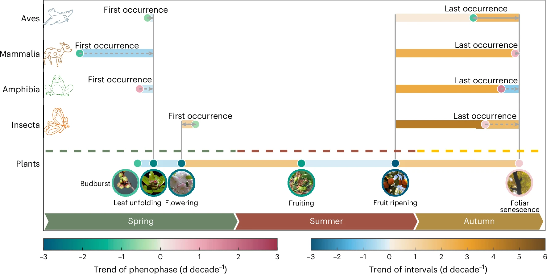 Nature Ecology & Evolution:朴世龙院士团队与张尧研究员团队揭示动植物物候响应气候变化的不同机制