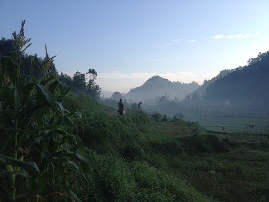 团队以鸟类和蜂类作为生物多样性的代表类群,通过野外调查,量化不同类型的退耕还林森林、天然林以及退耕还林针对的农田这几类生境类型的生物多样性高低。鸟类调查使用的是听和观察结合的常规鸟调方法,蜂类调查则需要布设采集器、把标本采集回实验室进行物种鉴定;而由于数据独立性和样本量的要求,两个类群的调查都需要团队成员在调查生境中长距离地行走去布设调查点。“300米是相邻的样点间直线距离的最小要求。农田还好说,但我们调查的森林不仅在山坡上,而且几乎都是没有路的,全靠调查员硬钻。除了望远镜,砍刀也成了我们离不开身的工具。”在研究区拉练式的几个月野外调查做下来,华方圆和团队固然经历了不少艰辛——连聘来做野外助手的村民大叔都表示“大学都毕业了还来做这样的劳力活儿,我的小孩绝不能送去学你们这个专业……”——但也因此对退耕还林的落地推行及其相关的林业管理话题有了深切的一手认识。